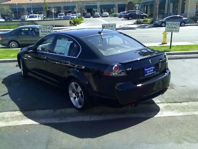 Just saw a new G8 GT up close and personal for the first time today, this particular car had the sport package with the "19 wheels which are perfect for setting off the wide-track stance accentuated by the bulging wheel flares. With the Sport package wheels and the Onyx on Red leather interior this car IS the hottest set of wheels anywhere, I don't even think an E60 M5 comes close for good looks and powerful road presence. I had the opportunity to sit inside and there's really nothing quite like it, though the car in discussion didn't have a moonroof (something you can't really get your head around living here in SoCal) it had just about everything else. With the front drivers seat adjusted for my accommodation I assumed that just like every car I sit in the left rear passenger seat would be entirely useless, well I was in for a real surprise, because sitting in the backseat was almost as good as sitting up front, my knees barely touched the drivers seat (6"5" here mind you). I didn't get to drive the car as a customer who came in prior was filling out paper work to buy it. Not a moment or two later after I'm down the street and around the corner the sales man called me back to inform me that the deal fell through and that I could come back and drive the car, but a family emergency prevented me from doing so.