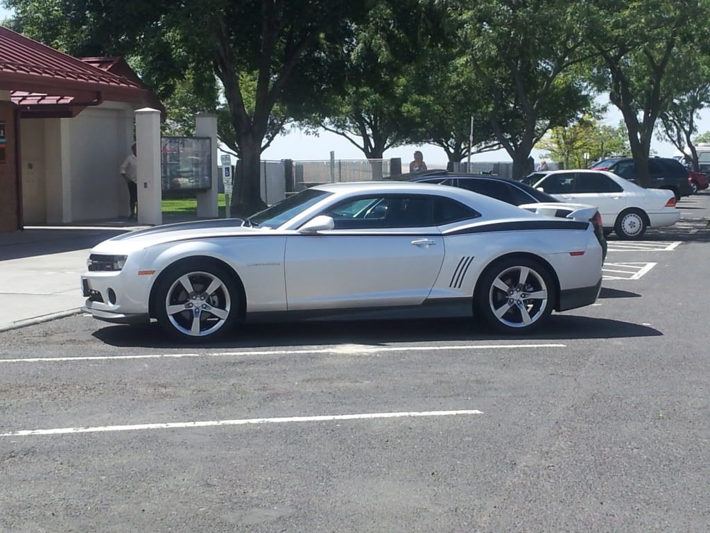 ![]() Quick story, I got my Camaro July of 2010, about 1 week after I got back from my last trip from Afghanistan. I was stationed at Fort-Lewis, and I went to the Puyallup Cheverolet after I dropped off a friend at his house one friday afternoon. I went in and told them I wanted a Silver V6 Camaro, but they didn't have any :( So I was about to leave when they said "Hold up, let us make some calls." About an hour later they found one, but it had the RS package installed along with a few other extra's which was gonna raise the price above what I wanted to spend (cause I was just gonna pay cash). I thought about it for oh about 3 seconds > and called up my bank, and they pre-approved me for 35k at 3.8% for 5 years. So I told them I'll take it. They had to have it brought over on a truck over night from some place 600 miles away.I came back the next day, and got there just as the truck arrived with my future car. and since I had quite a bit of extra money available, I asked how much it would be to get the ground effects and ralley stripes put on, and they told me, and I told them I wanted that, so I got to take the car home and drive it for a few days, then brought it back so they could install the stripes and the ground FX kit. I loved it ![]() About 3 months ago, I happened to go into the Parts / Service department area while I was having services on my car done, and saw the new stuff that had come out for the camro in the 2012 magazine they had at the counter, and I ordered the new High Wing Spoiler, and the Heritage stripes, and about 3 weeks later I had those installed, however, I had to buy a new trunk lid, so the stripes on my trunk are missing now (still trying to find a place to get those replaced.) I just moved to the KC area begining of August, and will be living in Lawrence for at least the next 4 years (since I just started college 2 weeks ago). I've seen a few other Camaro's driving round, but haven't had a chance to meet anyone from this site yet. Hopefully, I'll get to do that sometime soon. At this point, I'm looking at what I can do next for my car. I'm not trying to do anything performance wise, just going for "eye candy" stuff, and I'm thinking going with a low profile decepticon look, by adding a few decepticon symbols on the outside, and getting some black rims, and maybe blacking out all the chrome letters and bowties. Or, and this one is gonna be interesting, I'm gonna go with a Tron look. The Tron scenario is going to involve a lot of work. I talked to the company who did all the lighting for the Tron: Legacy movie (Lighttape), and they got me in touch with a company called Illuma-FX. Working out the details on design and cost atm, but if this isn't going to cost too much, and assuming it's legal in Kansas (I'm still trying to find out exactly what is and isn't legal as far as extra lighting goes on cars in Kansas). Assuming its legal, and assuming I can afford it, I'll also do the LED lights on the wheels (saw that posted somewhere on these forums) as well as the under-carrage lights. and eventually, do some Lighting on the inside as well with either Lighttape, or something else I saw while I was browsing the web for lighting systems. But for now, this is what my car looks like atm. ![]() ![]() Oh and I've already taken the front license plate thing off (hate washington) and I gotta get the 4 holes fixed at some point, and I got custom plates on order coming in the next week or so ![]() Laters all, and hopefully I will meet some of you guys eventually ![]() Shalt Naught