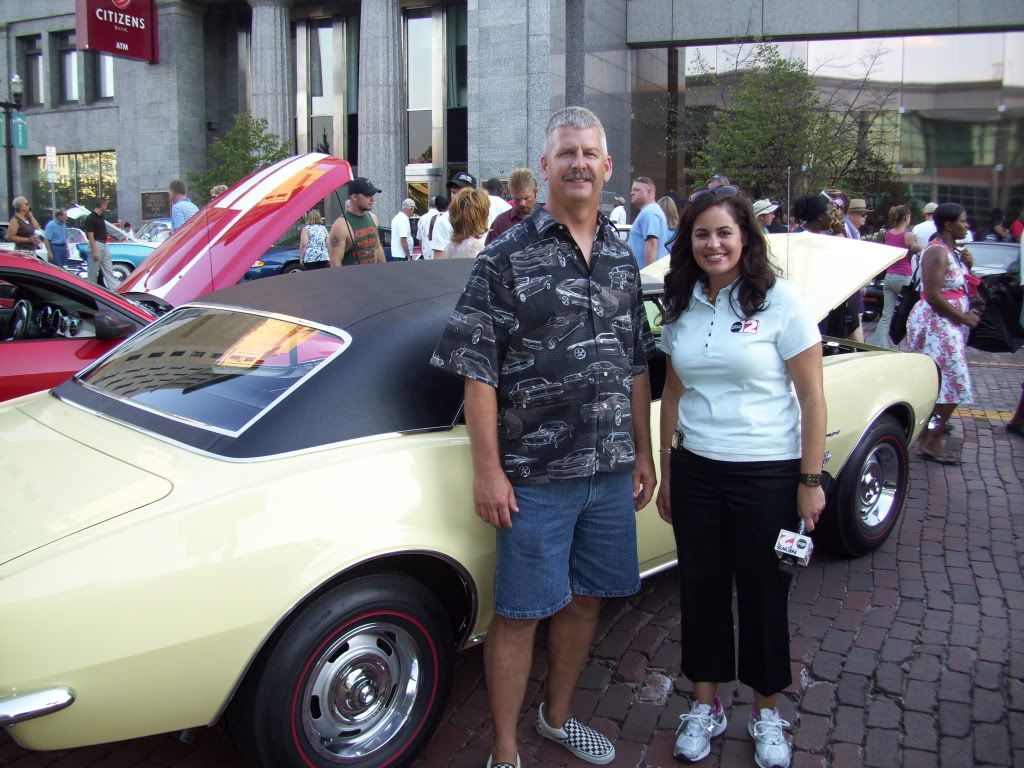 Here is a pic of my 1967 Camaro base coupe. Owned it for 2 years, is a numbers-matching car.....327 210h.p., powerglide, 2.73 10 bolt rear. Slow, but still a sweet cruiser. My pic was taken with Kristin, a local TV newscaster, who was interviewing me about my Camaro, which ended up on last weekend's 6 & 11 p.m. news broadcasts. The car show was "Back to the Bricks" in downtown Flint, MI. Great time!