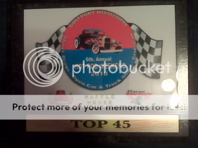 Congrats to Jimmie for getting his first award. My parents and I are in the Misfits car club that was sponsoring the event, so I have his award in my posession because he left before he was able to get it.