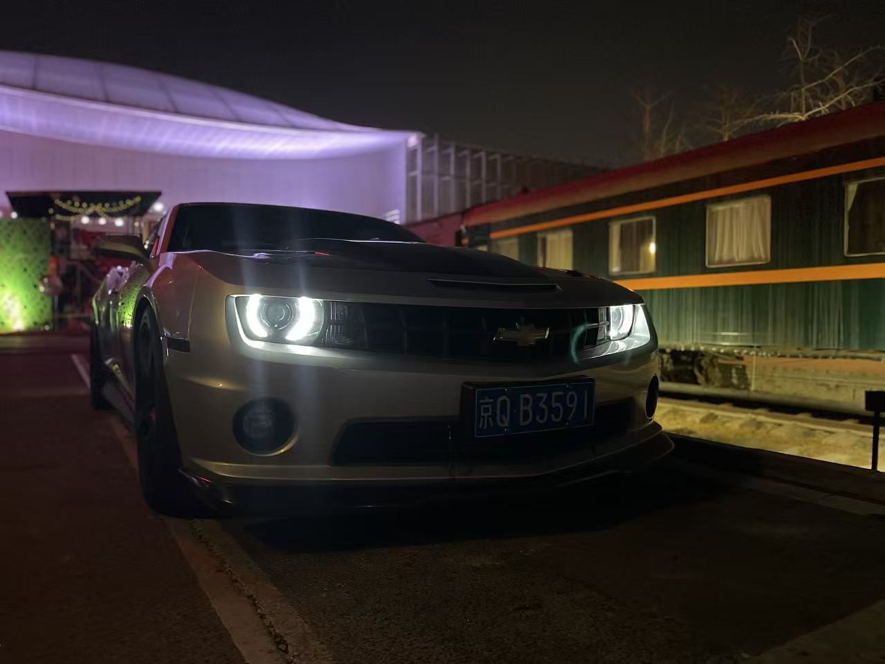 The venue was really special, it was in an old rail yard that has been converted to artistic and shopping spaces. There were still trains sitting there and the stage was build over the tracks. The tracks were uncovered in the middle of the space and you can see the arches where the trains would have come in or out in the background. I had to get some night shots of the Camaro with the old trains in the background as well.