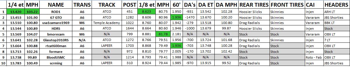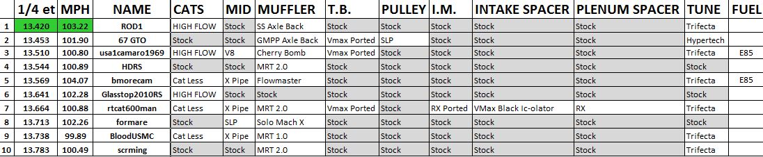 Unofficial 1/4 Mile (V8) 2010+ Camaro Fast List Merc Dragstrip and Launch Techniques Discussion 250 04-01-2014 11:40 AM