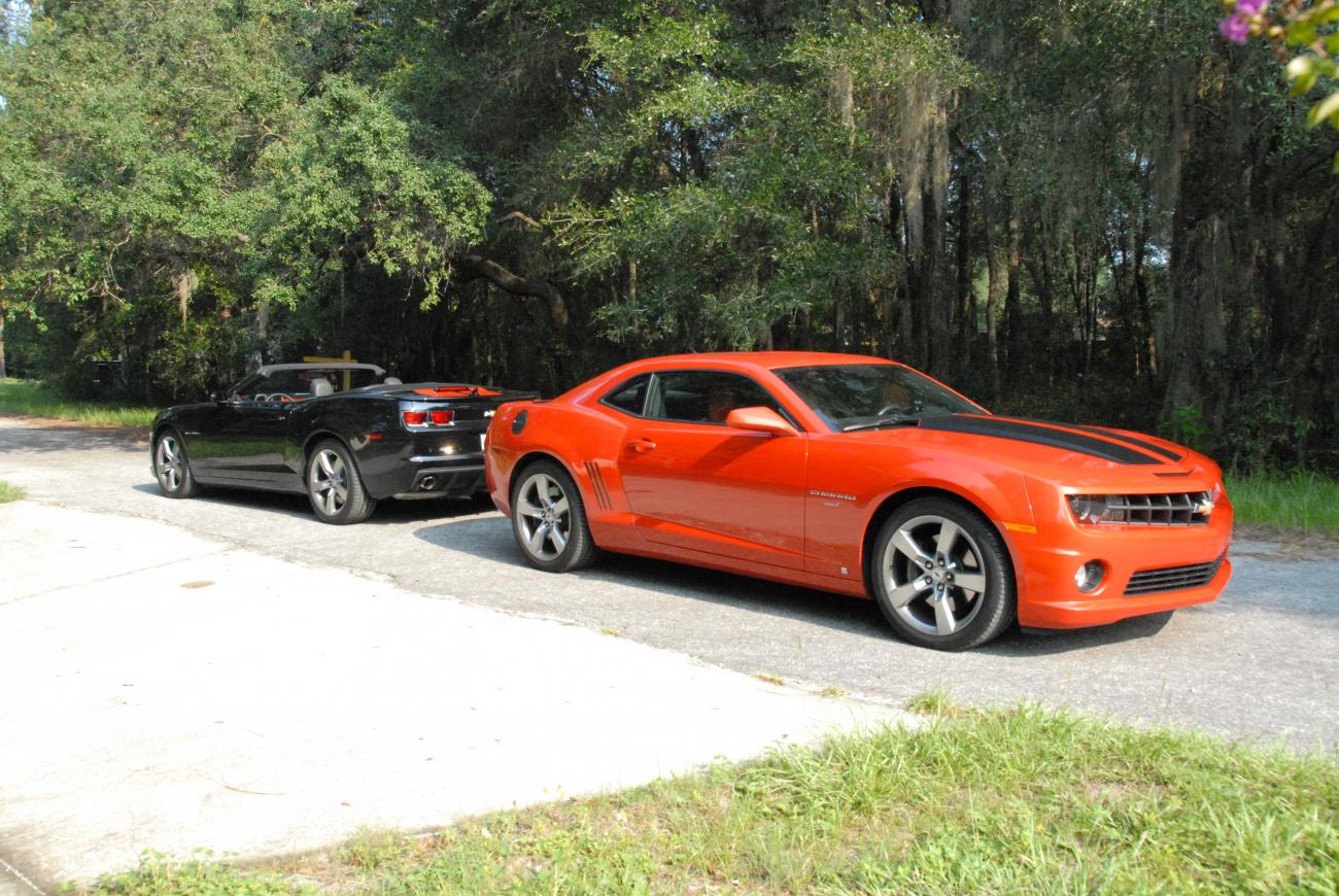 I think everyone has their cars at this point. Z07 Ed is in my Vette club but I have not seen him lately...Probably at the meeting this week. I did get a cool new picture of both my "girls" in the garage. Have to do "musical cars" later because I'm taking the convertible out today and need to rearrange. I'm going to get a couple of shots of the two Camaro's and the Vette today.
