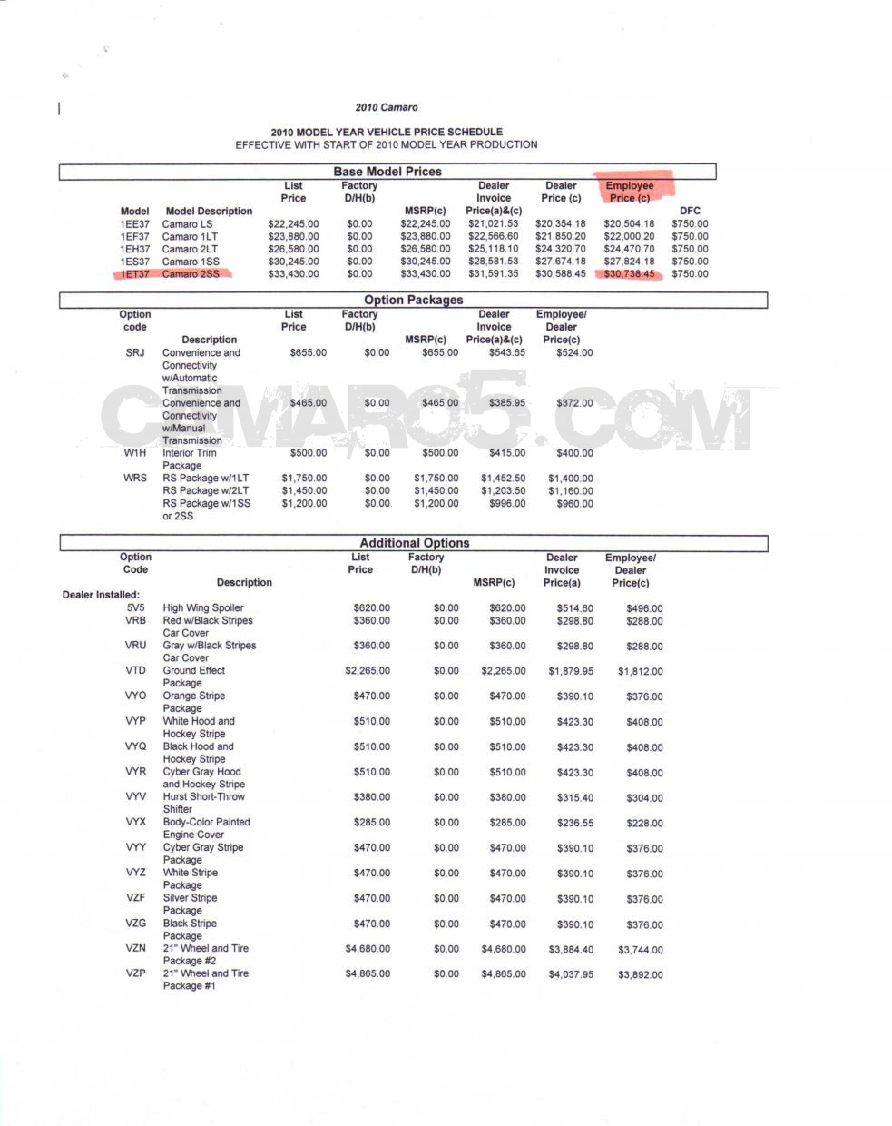 is the canadian CAMARO PRICE COMPLETE LIST -- OPTIONS + ACCESSORIES (MSRP, Invoice, Employee) out yet?