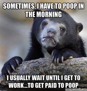 best part of pooping at work - 10 minutes a day equates to a 40 hour paid vacation (accumulated) at the end of the year...