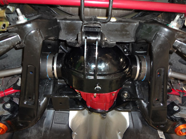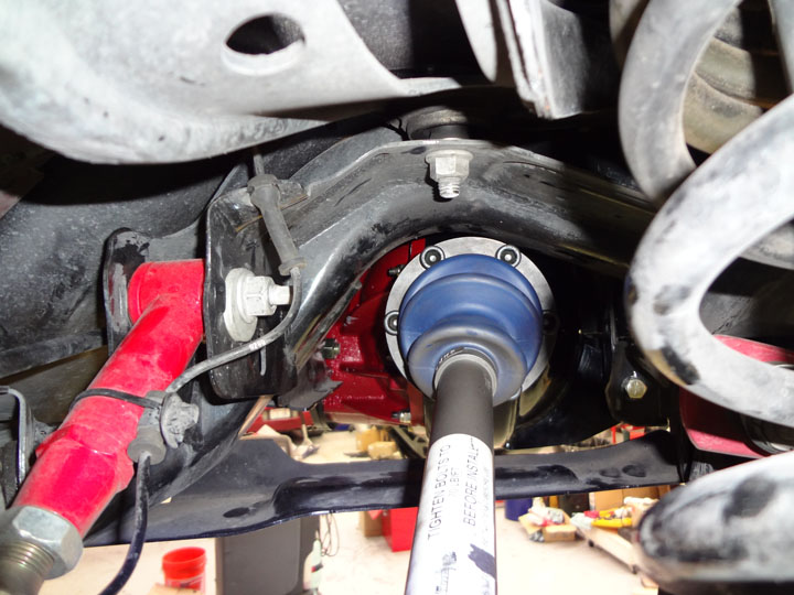 These stub shafts and axles were big on the ground and in the box, but now that they are mostly installed in the car... They are absolutely monstrous... I'm thinking that a Boeing 767 could use these for landing gear... and they look like they could drive a train down the track... Unbelievable... Simply huge... Bear in mind the stub shaft flanges coming off the diff are 7/8 or so of an inch thick.... That should give you something to compare with....As you are looking at the diff, there is the black part of the pumpkin, then a silver plate... Outward from there is a gap, then a dark metal plate... That's the stub shaft outer flange.... 7/8's of an inch thick... Everything out from there is CV joint and axle.... Simply massive.... and feels and appears to be hell for stout...