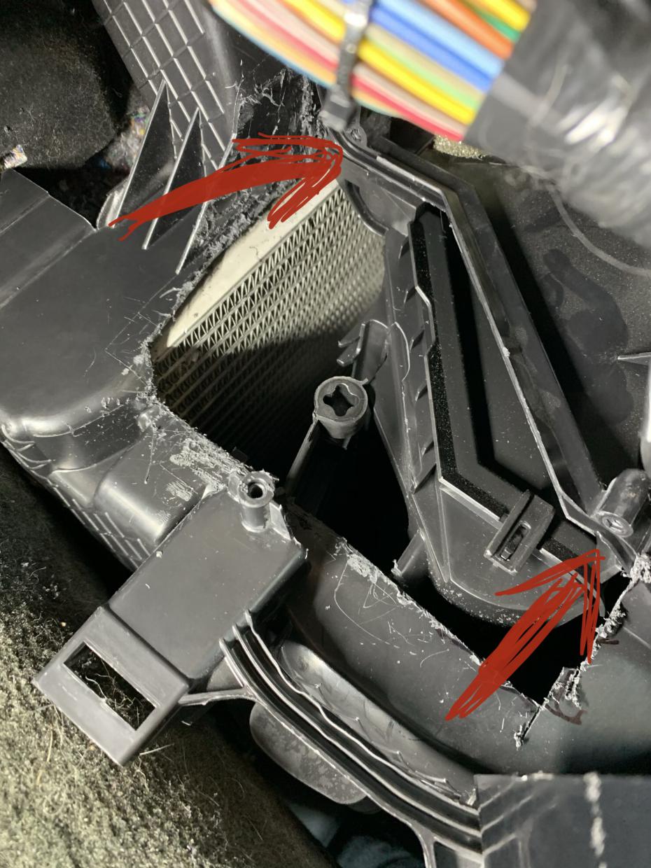 Got some air again, finally got around to the blend door, 5 hrs of work and used multi max tool to cut, good luck if you try this, def not easy