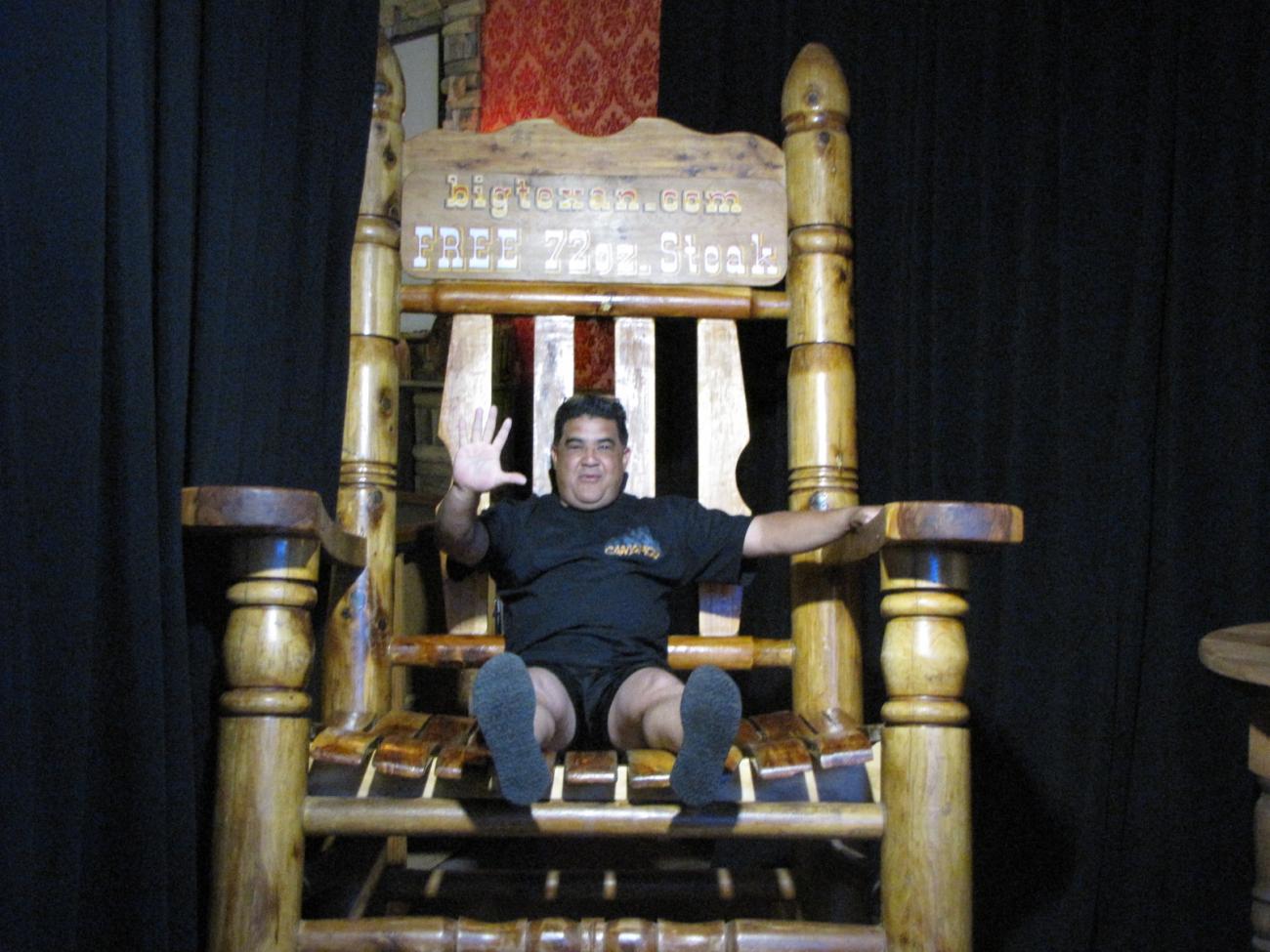 nice pic of the big texas chair. i had a blast talking to yall and driving with yall too i hope you all make it back safe. |