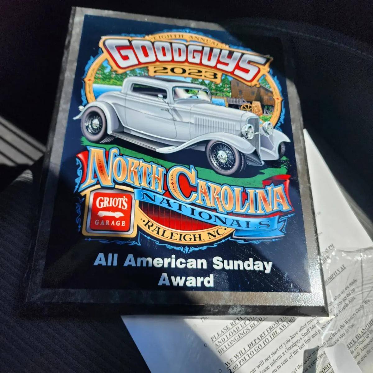 Went to goodguys car show in Raleigh North Carolina and won an all american Sunday Award.....