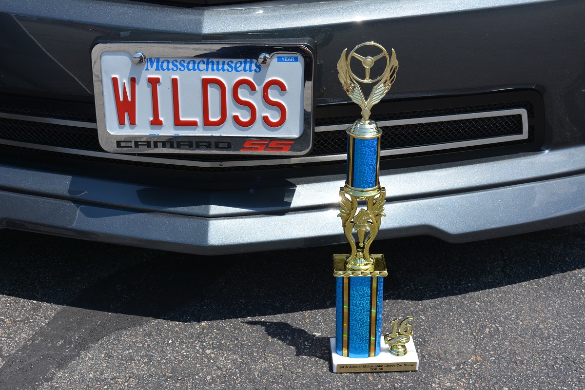 As another car show season comes to a close thought I post some pictures from the show at Quincy High School on Sunday to benefit the high school hockey team. The sun was out but boy the wind was blowing. Anyway, a nice way to end the season with an award for the Wild SS. And check out the 77 Trans AM complete with a Jerry Reed 8-track. Cool!