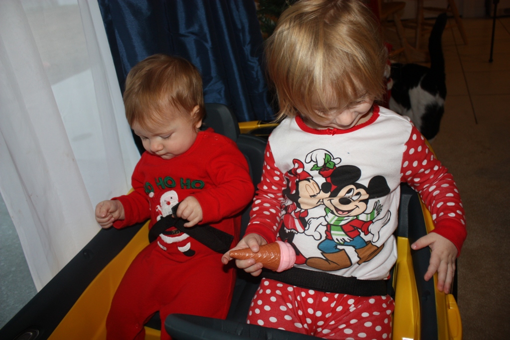 Here are a few pics of the little ones this morning with the car. As you can see in the last photo they know to wear safety belts. Merry Christmas. Sean