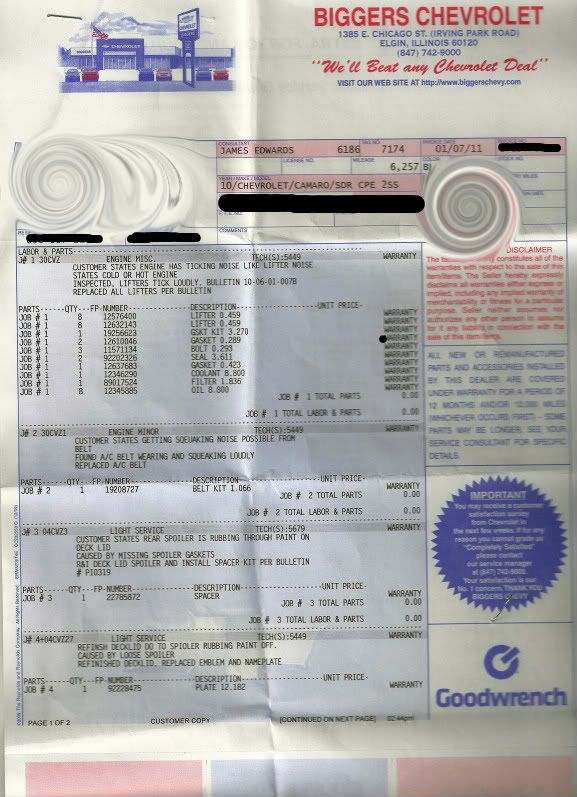 As for the lifters they replaced all the lifters. This meant taking apart the engine all the way to the block. So now the engine has all new gaskets and seals etc. Also got a free oil change out of it too lol.