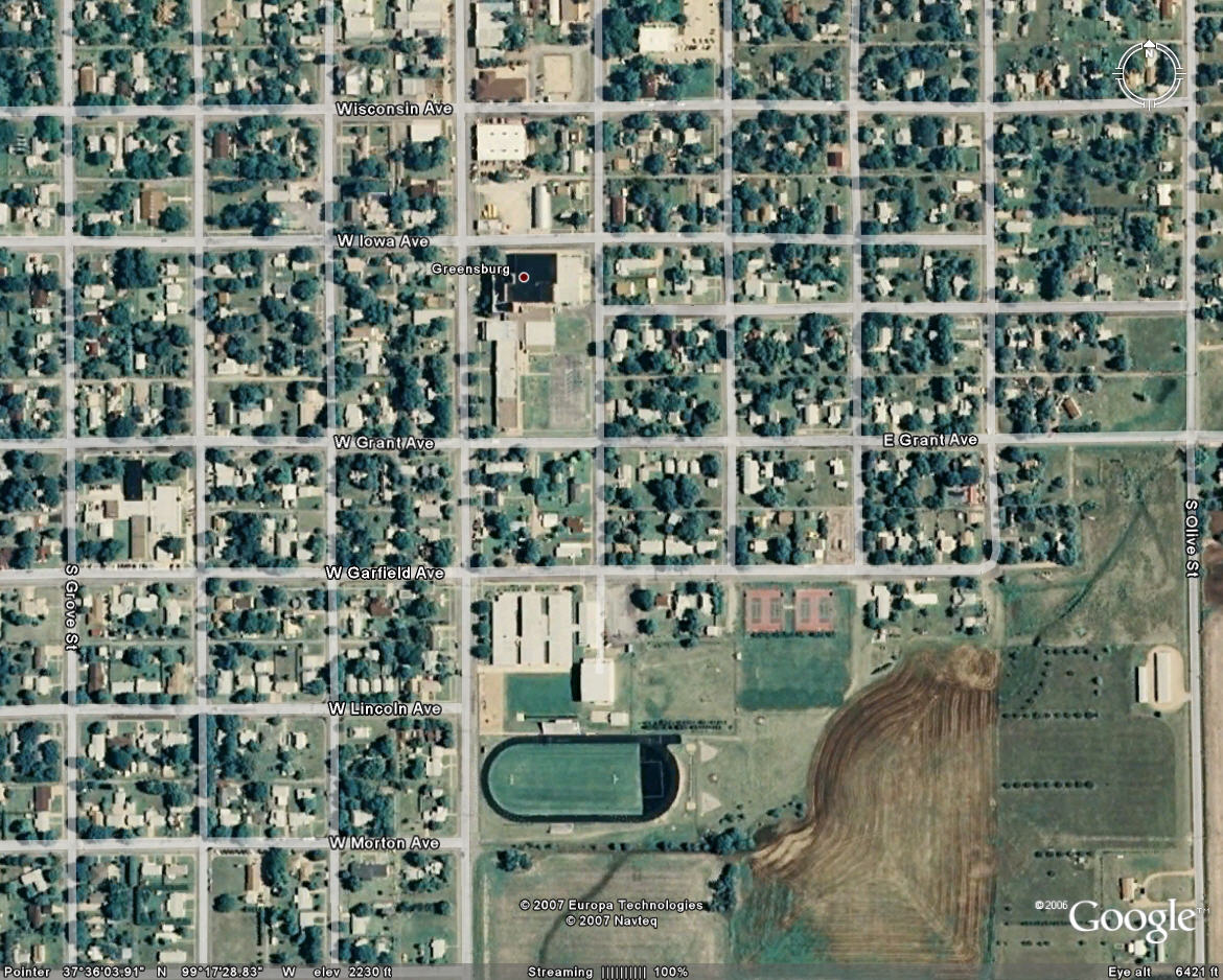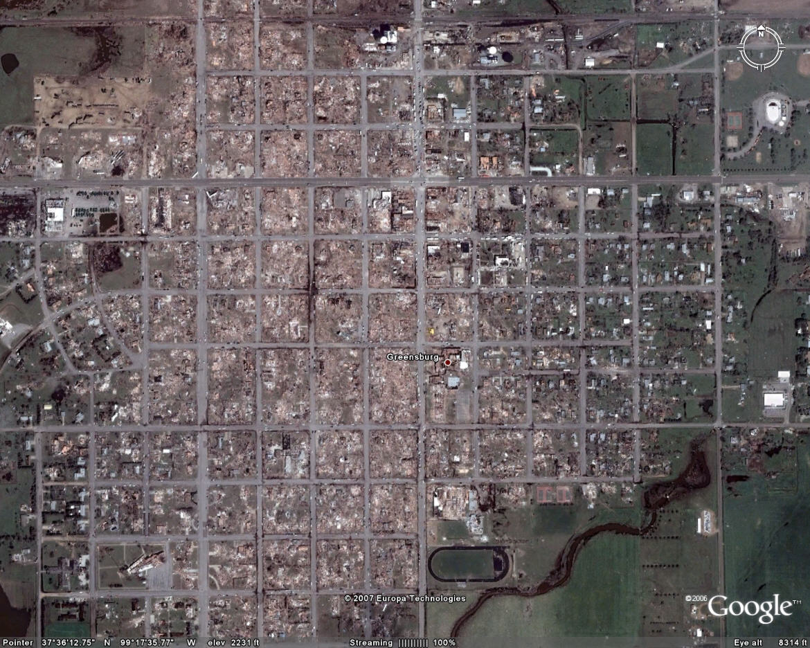 Before and After pics of a Greeenburg, Kansas hit by a tornado earlier this year.