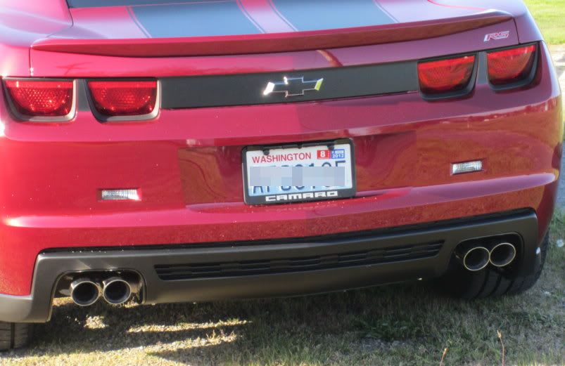 So, the last couple of weeks I have been working on my next mod. To match my ZL1 rockers I went with the ZL1 rear difusser and quad tips on my solos. I finished them mid-weak, but just got a chance to snap some pics with her halfway clean today! Im really happy with how it turned out!