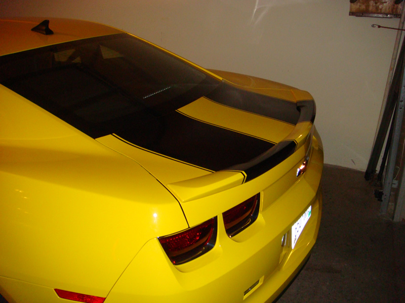 Attached are other pics. The body shop used the factory decals to lay out the design. The inside edges of the stripes are at the factory dimentions. Then the decals were mover towards the outside of the car to create a wider stripe, then wrapped around the spoiler and onto the trunk. The hood was done the same way. This is such an awesome car. GM really out did them selves on this one! ![]() I just noticed, On the bumblebee car, (first and third pic) right at the windshield/hood line the silver bar. Is this the wipers? Anybody?