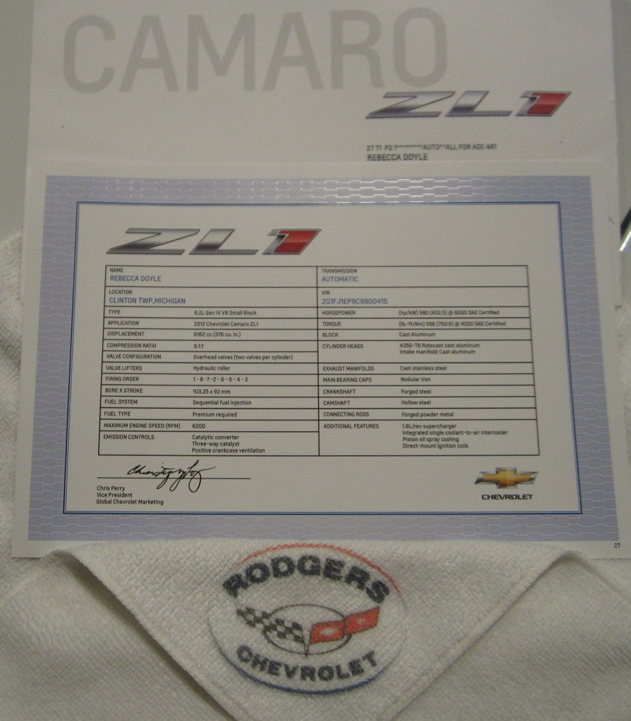 Drives: 2012 ZL1 CRT 6 Speed, RTQ, B92