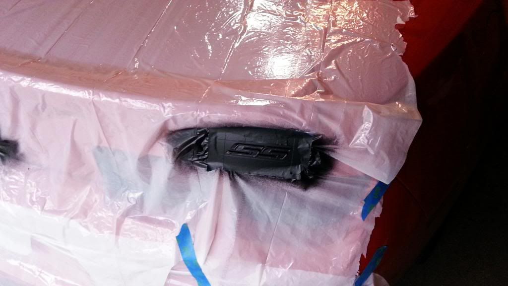 I really wanted to make the chrome outline on the SS black so I taped it off to see what would happen. Not the cleanest job, but I've never done this type of thing before. Plus it's plastidip so I can just peel it away!