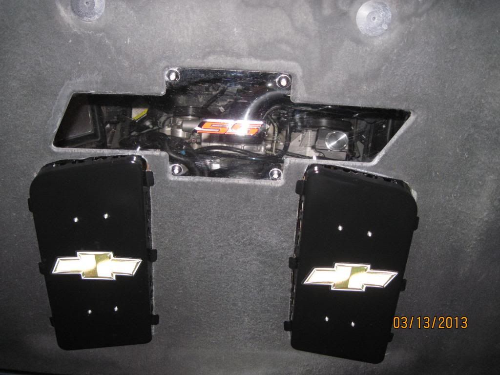 Traded-in car: K&N Typhoon intake, JBA Shorty headers, Solo mid-pipes/hi-flow cats, GMPP Track Pack axle-back, Vmax ported TB, Billet Custom catch can, billet tensioner pulley, Hines Hex Vents, Z/TA rear spoiler, ProCustom headlight covers, Drake black/riveted quarter window covers, GM satin fuel door, chrome and brushed caps/covers under the hood, EmblemPros underhood bowtie & fuel rail "Camaro" plates, chrome "SS" door kick-panels, chrome trunk latch plate & strut rods, Street Scene lower grille ducts w/LED lights, front bowtie-delete, Yates Performance pedals, 35% tint, etc.