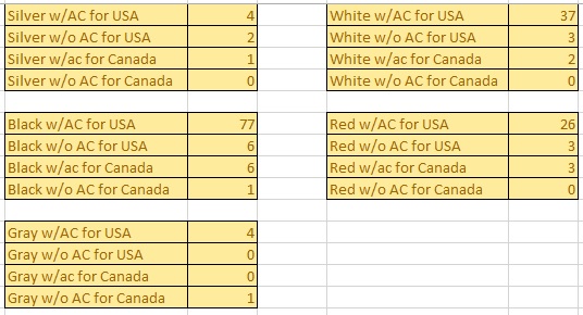 They were building 8-12 Z's per day and now looks to be down around 3-5 Here is a little taste of the color break down ![]()