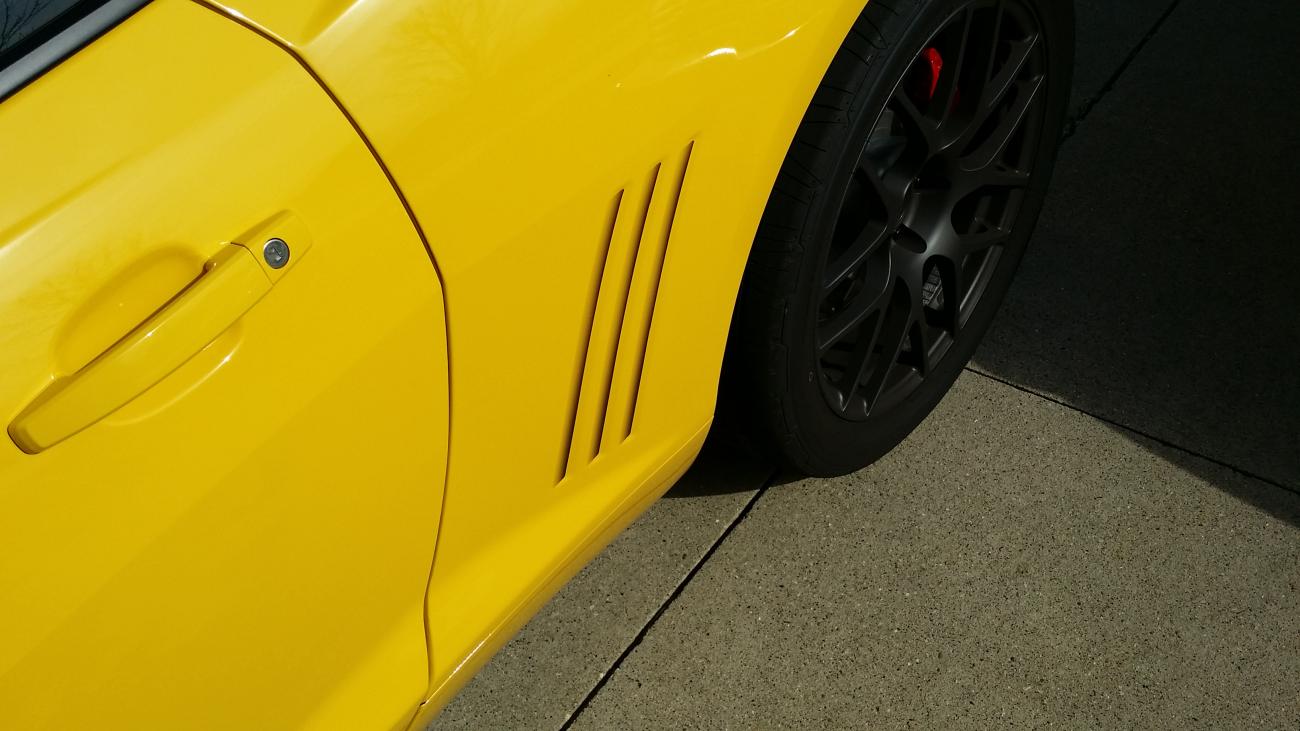 I just added the SLP faded side gills (flat finish) to my Rally Yellow Camaro. I have waited four years on pulling the trigger on this mods. I have pretty much ran out of stuff I want to do to my car now, so I finally figured what the heck. I will say... I really think these add the finishing touch to the gill area. It looks really nice in person. That is one thing that was holding me back... how will they would look in person? I saw some of the cheaper ones out there installed and just did not think they look good. I will say, you will pay more for these compared to the other brand, but sometimes you get what you pay for. These set me back close to 60 bucks which is not cheap for 6 pieces of vinyl, but in the big picture this has probably been one of the cheapest mods I have done to my car.. Here are a few pics.