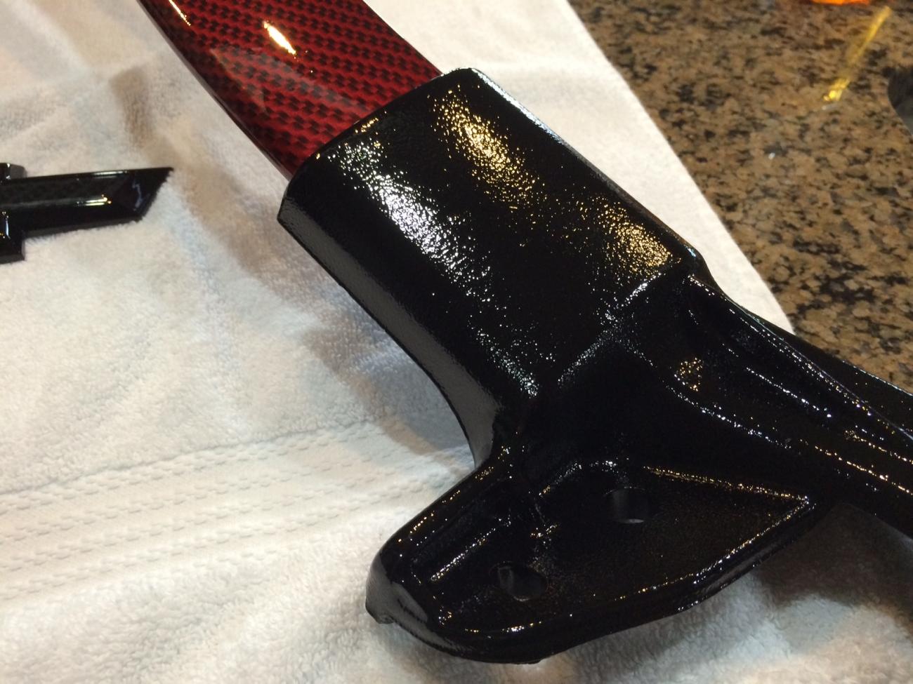 Looks amazing!!, even better in person. Crystal Red Carbon fiber and gloss black!!