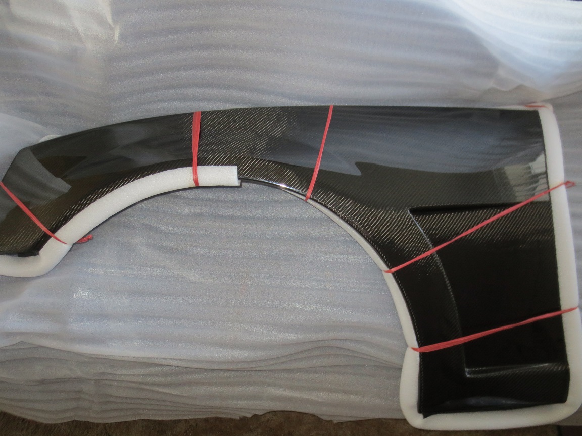 So I just got my prototype today. It came late in the day so I wont be able to assemble till tomorrow. Here are the fist looks. Now this one is wet carbon fiber hand land and vacuum cured. The final product which will be for sale for those interested will be 100% dry carbon fiber cured in an autoclave. This is just a prototype and final design may vary. So my car is officially a mule. Other CF products coming this week. If your interested in purchasing save this thread and I will update on a weekly basis on status of products. Turnaround is generally 6-8 months, I started back in April so sometime in late Oct early Nov order should be complete. Limited supply. Enjoy
