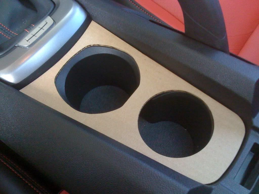 What you are seeing from the side is the plastic of the cupholder angles down. The fit is really good and it's a nice piece. I don't have it stuck down yet, just sitting there so it may be shifted over a tiny bit. I believe this is the Toddsnake piece, but the brochure that came with it had a different business name on it. I'll have to locate it and post it up. |