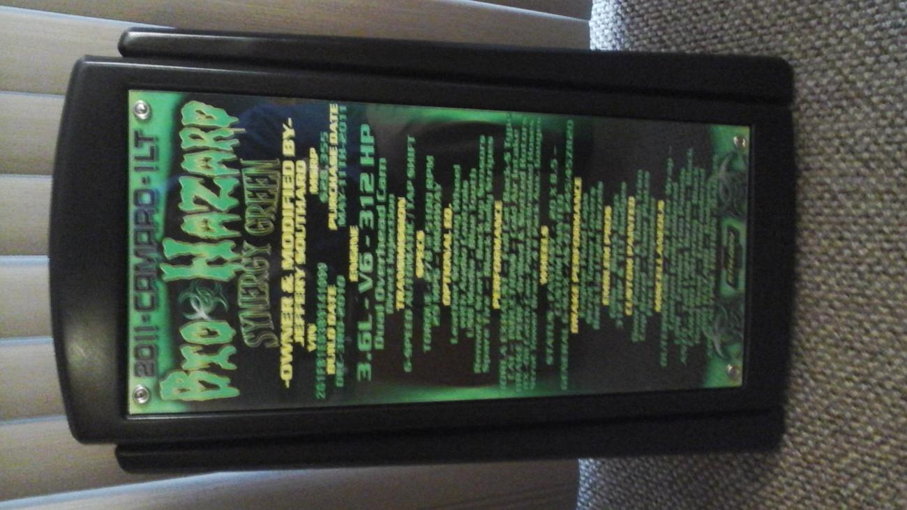 Can't wait to see it & mark this project off the list.. Talked to Lupe last night. He's painting my wheel inserts , radio bezel & a nice new set of Caliper covers. Bad thing is I have 96 # Allen bolts that go around the wheels. He was going to paint them Black , but they are chrome and he's worried Tha the paint won't stick to them . After they get washed . Trying to figure out how to get the allen bolts black ,,any help? Maybe see if some one could bead blast them , then powder coat them black? Lmk if any one has any ideas. Thanks Pic of the info display on my show board 1#. He still has to change 2 things, high light - CUSTOM AIRBRUSHING - in yellow & put the steering wheel & Speedometer Bezel on thier on lines. But still looks pretty good. Can't wait to see Showboard number 2#.
