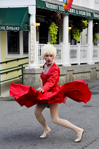 The lady in red. oh we need to watch him twirl in a Marilyn Monroe Dress!!! LAMO