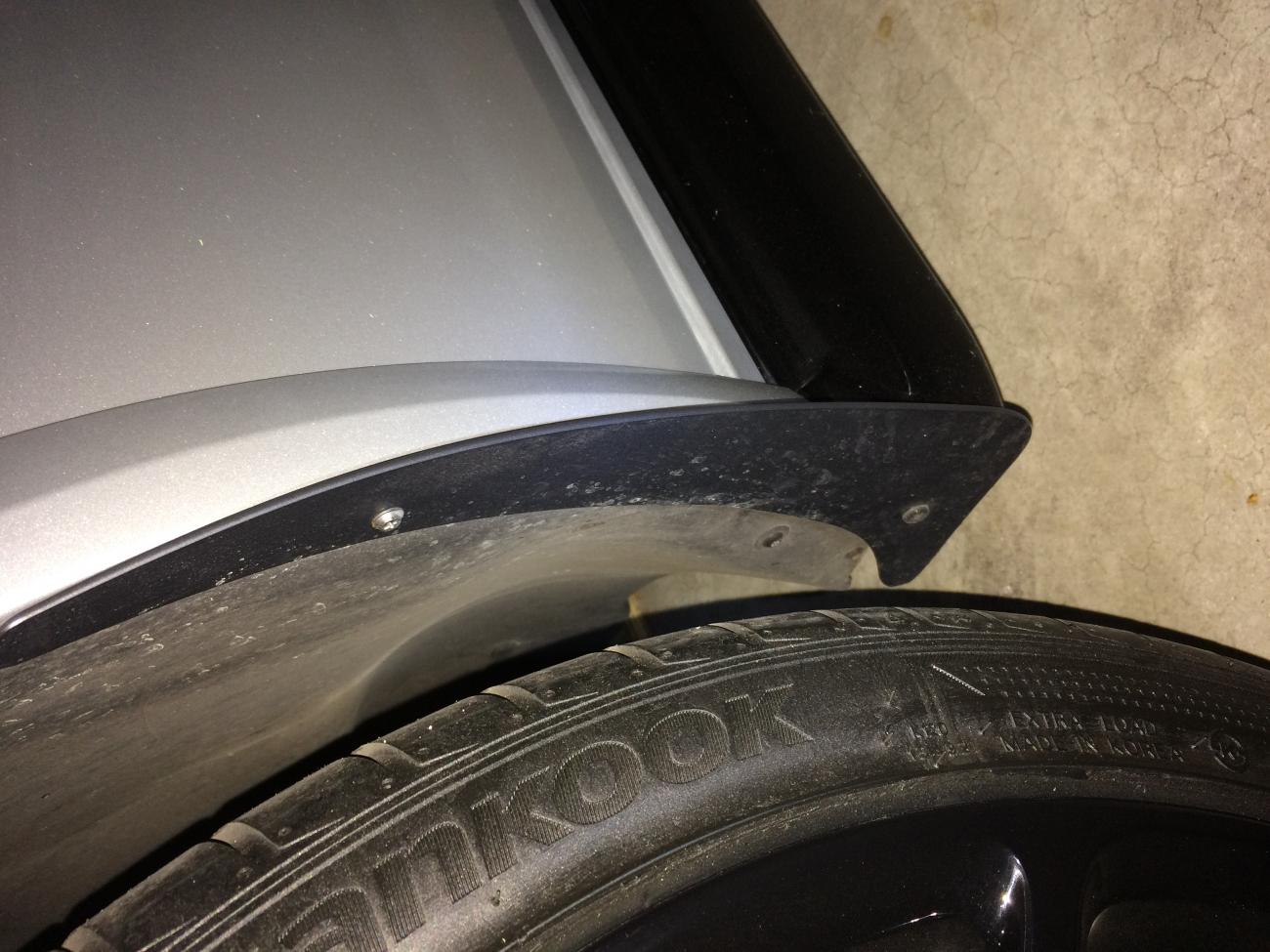 I just screwed mine directly into the flares. 2 small holes per flare is worth protecting the rest of the car rearward. I did not pre-drill.. simply muscled the screws in with a Phillips head. I have removed and reinstalled them several times while getting the car wrapped, and then when we modified the flares to be removable whenever we want without using tape.. Flares have held easily even after all of the removals.