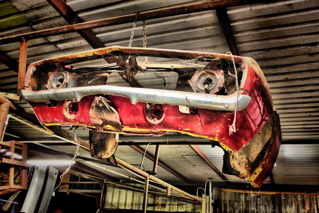 Here's the front end of the '69 hanging from the rafters.