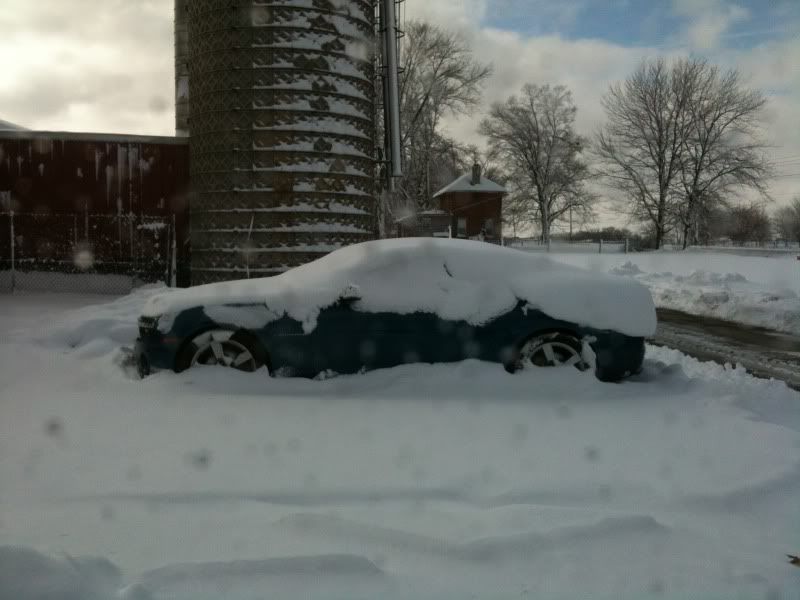 #1 pulling out is the hardest to do. I can't count on both of my hands the number of times I got stuck in a driveway or parking lot. I've tried everything...rocking the car, pulling out in second, EVERYTHING! After trial and error I started carrying around 4 50 pound bags of salt in my trunk to weigh down the rear tires. They went from bags to small storage containers after a week. BECAUSE when I got impossible stuck in a driveway I'd pop my trunk, scoop out some salt, sprinkle my path and come out 30 minutes later to a wet driveway. Before that the ONLY way I could get out was to turn off my traction control, spin the tires, and hope I got a little momentum to get me going...sideways was often the direction the car seemed to go, but any movement what so ever got me out. #2 Deep snow on the road. The worst thing to possibly do is to drive home after work to see a blizzard outside with 10 inches already on the road. My biggest issue was my traction control stopping me. At a red light I wouldn't be able to get my car into the intersection and out by the time the green light turned to red. I can't count the number of angry drivers I had honking behind me as I'm turtling my way through this intersection because my tired don't have anything to grab on to. I always turn my traction control off at low speeds in snow because as soon as the car begins to slide (even at 4 mph) it automatically locks my throttle and I coast to a dead stop in the middle of the intersection because it stopped my momentum that I'd just worked soo hard to get. Best thing to do.....turn it off, floor it, and wait for your tired to grab a good patch and get you going, then turn it back on once you get over 15 mph. #3 High speeds in snow. My car didn't do bad at all at higher speeds in snow and slush. I thank my traction control for saving me every time I hit a patch of black ice. The only time I ever thought I was going to die was during a RANDOM sleet/ice storm back in April ( I do believe it was). it came out of no where and within 20 minutes there was 3 inches of sleet on the road. I was on my way to work doing a respectable 35 mph in this weather and out of no where I felt the rear end of my car slip out and whipping to my left where the 5 ft deep ditch was. The ass end did a moderately casual turn about 140 degrees to my left within 4 seconds. I took my foot off the gas, turned VERY slowly to the right and SOMEHOW, SOMMMEEEEHOW managed to get it going straight again. I don't know how I didn't end up in that ditch. I think someone 'upstairs' knew how much I loved my car and saved her from that ditch that would have damn near totalled it. #4 The snow plow! This car likes to plow when it stops. Coming to redlights doing 20 mph I would start braking (extremely softly) about 75 yards away. You might think I'm exaturating, but it takes FOREVER to stop! If you brake too hard the car will freeze up and start making that horrible noise and slide to stop some 50 yards farther than you planned. #5 Changing gears sucks! I drive a manual transmission and a good 70% off the time my rear tires would slip just a little if I didn't go extremely slow changing gears. 1st to 2nd is the worst. But you have to change VERY slowly to keep the rear tires from jumping and kicking you out of your snow trail. I think I've shared enough...haha if that doesn't give you an idea, then I'll send you a video me and my friend took driving through fresh snow at 3 am leaving the bar. You'll see just how far the car slides when braking and see how many intersections I slid straight through. But just for the record. I drove it all winter with not a scratch, dent, or problem once spring came. And I'm from HAWAII! Never driven in snow a day in my life and I figured it out without hurting the car. SOOOOO....if I can do it, anyone can! ![]() ![]() There's snow back there. This was one of the nicer days. Granted it was like 10 degrees out.