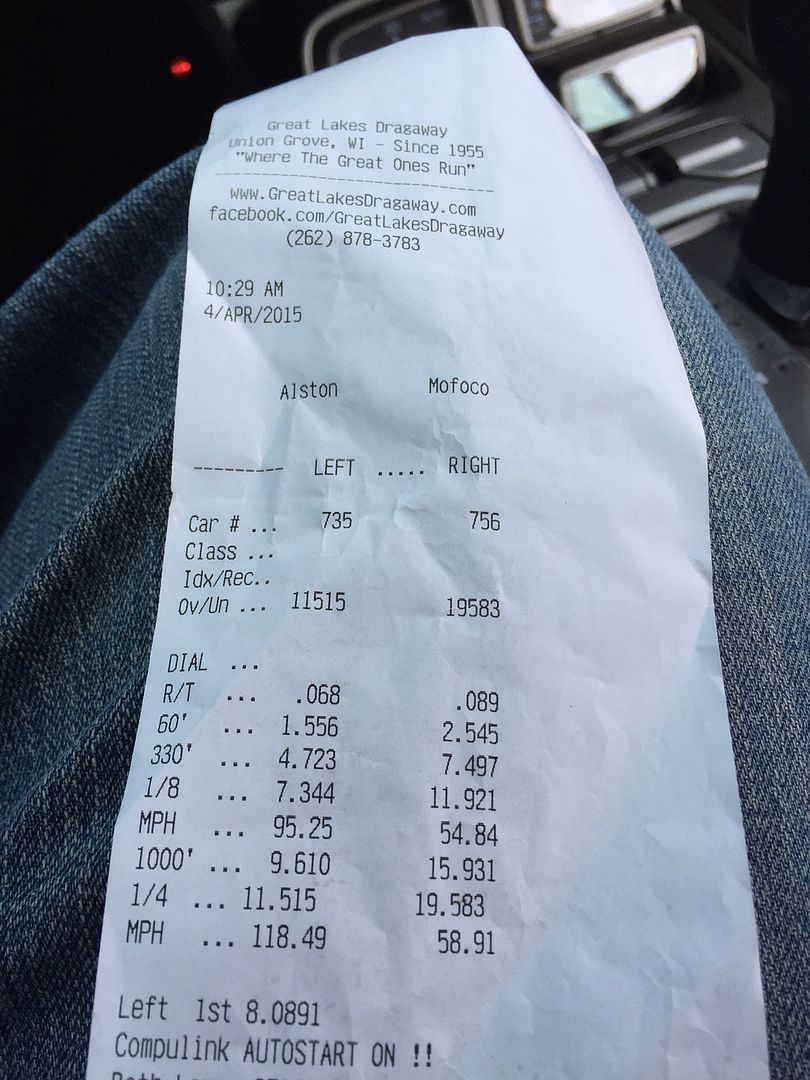 [/IMG]Date of pass:4/4/15 CAR#735 great lakes dragway Weather conditions: (include Density Altitude, if known):good -439 da cat#5 merc can you please add me when you get a chance,thank you
