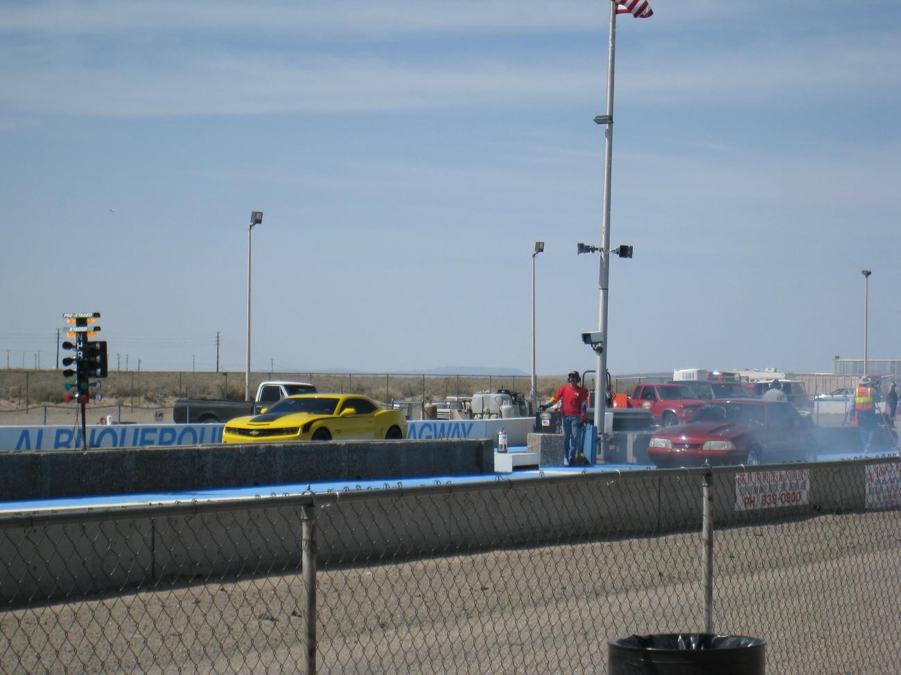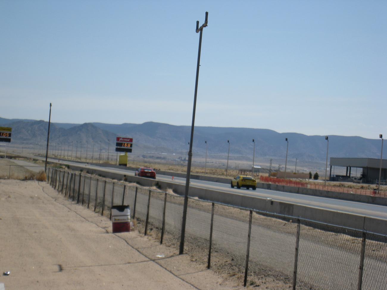 Yesterday we went to the Albuquerque Dragway for a little 1/4 mile FUN. It was a beautiful day. The DA was 7160, we both made several passes, and both our cars held up great. They are so close to eachother in speed. We definitely have a lot of room to improve our times. I don't think either one of us had a truly clean run. We both kept hitting the rev limiter in different gears. We had two head to head matchups. RS won one, I won the other. But RS did post the better time of the day where he smoked a mustang. He ran a 12.78, and my best was a 12.97 We definitely need more practice and are welcome to any tips you might give for improving our 60 ft times. ![]() ![]() :