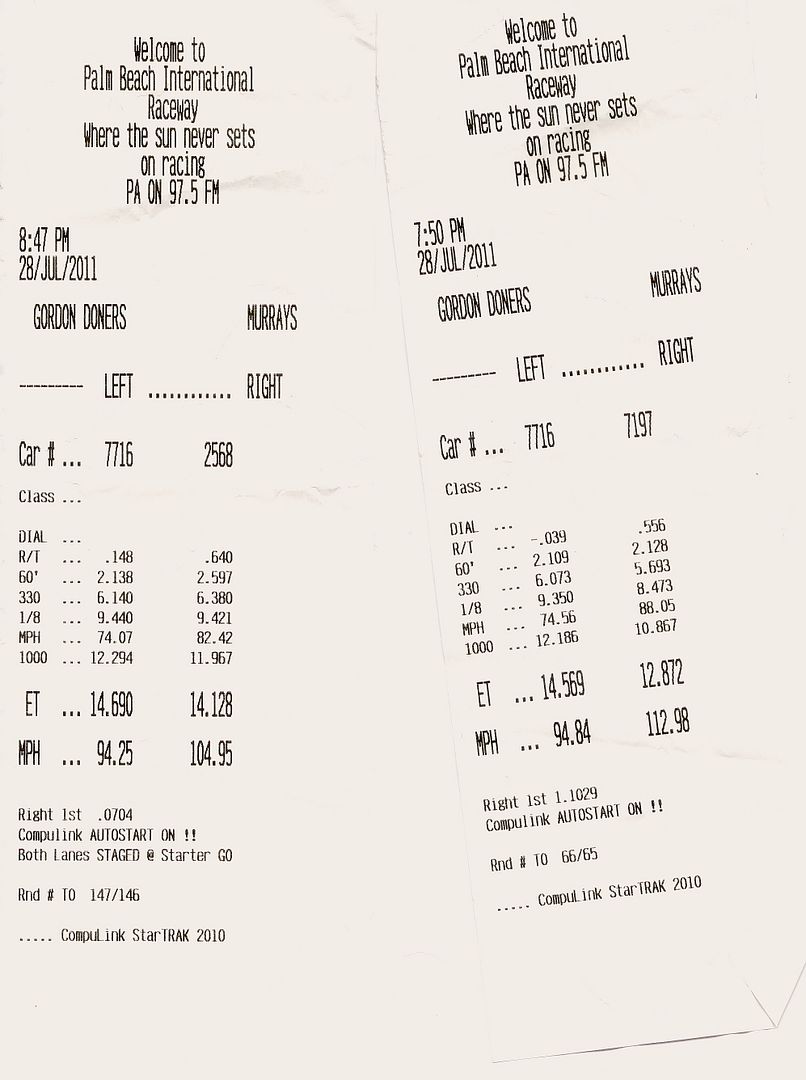 Clutch and axles are definetly in the works... As far as my suspension I did forget to mention I have a set of pfadt trailing arms, drop springs, sways and endlinks. Not sure if thats considered "stock suspension" anymore, lol... Anyway, I dont think I'll be at the 1/4 mile enough to justify a set of bogarts and slicks, YET!!!!!!!!!! But, I am already planning a trip back up to PBIR this wed to get a couple more passes, so will see!!