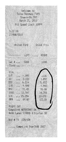 Went to the track last saturday. attached is my time slip 12.23@113mph!!!!! the time slip i scanned is crappy resolution, but it looks better than the iphone pic i took of it.