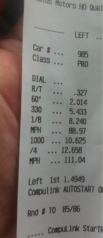 I have a stack of time slips, and I know what was done when... The previous fast time listed in my sig was with intake prototype rev. 2 w/ stock cats and throttle body... The only changes between my previous fast time of 12.85 @ 110.45 are: A set of high flow cats built in house, a Bo White ported throttle body, and I'm now on intake prototype Rev. 3.