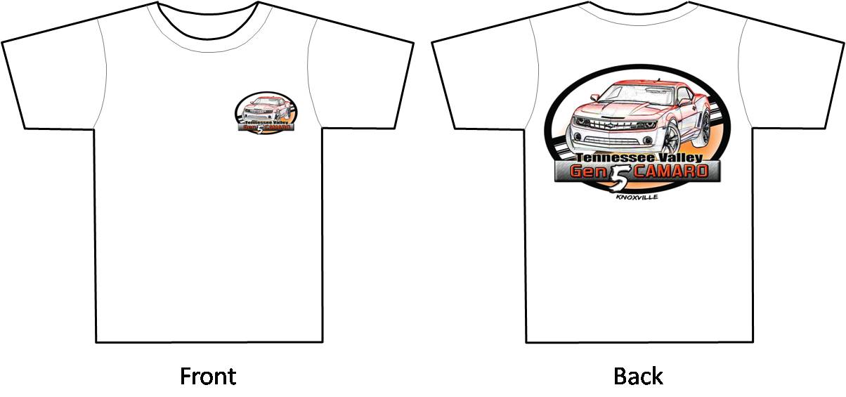 Hey CamaroKnox5, first of all thanks for all your efforts in taking time to put this GREAT shirt together. Put me up for two I'll PM you with the details. The shirt design was put in to vote and all present members agree to the design. So the Knoxville in the back will stay. Once again thank for the Shirts, Business Cards and Banner design.