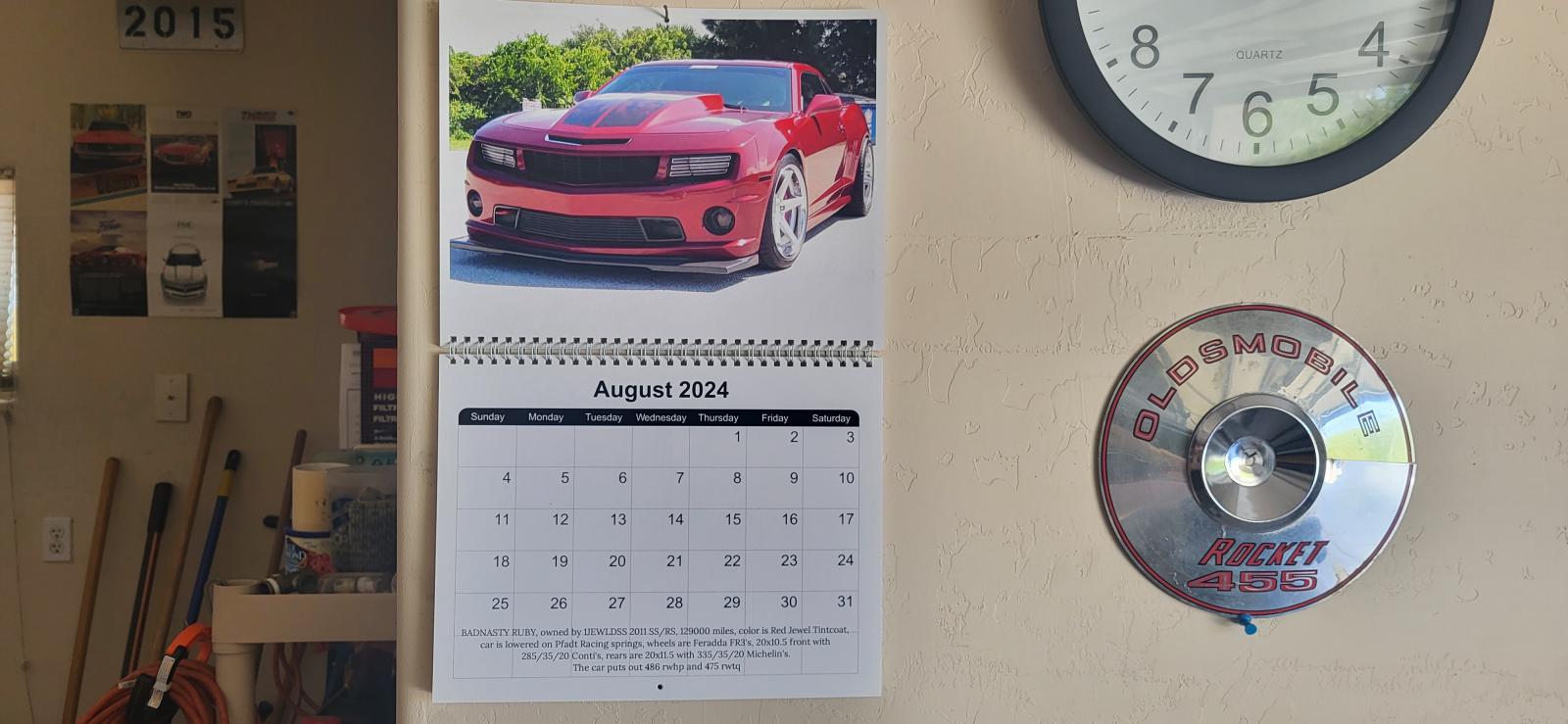 If you turn the page to August you'll be rewarded with one of my favorite cars in the entire calendar. I've mentioned it before but it's worth repeating. If "Tastefully Modded Camaro" appeared in the dictionary JEWELDs auto would be the photographic example. Well done but not over done this fellow knows how to put the appropriate pieces together to make one very exceptional Camaro. BADNASTY RUBY is not just all show and no go as it has plenty of power AND sound to go with the stunning looks. This month/pic might be the one I keep permanently displayed after the calendar's run is over.
