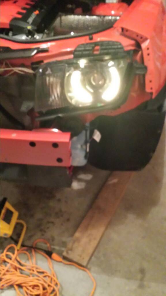 Looks great! Are you adding any LED strips to light up the grill area? Now that it's all apart would be the time, and the strips are very inexpensive, but add a really nice look. This is the look hubby wanted, Matts ZL1, he switched the halos to the Nite Owl system, and I love the LEDs in the grill. |
