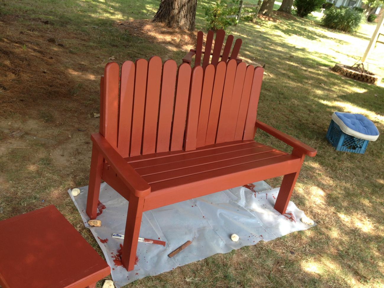 I did not go to the car show. It looks like they got rained on. This car show was rescheduled from a previous time that was rained out. We just stayed home where I could rest my back any time I needed to. I sanded & painted the porch bench (it was not in as bad shape as the other 2 chairs). Then I put my NCM track sticker & my new Camaro5 sticker on Ruby. Then Mike grilled out some burgers & brats.