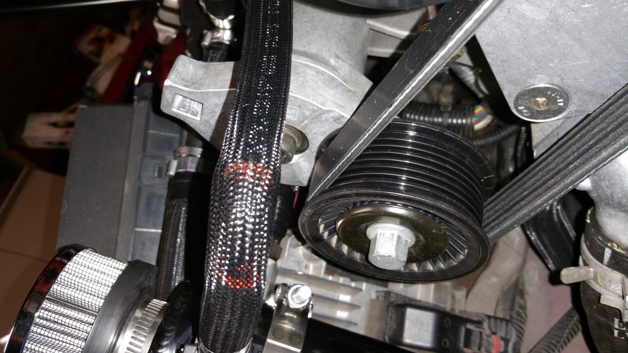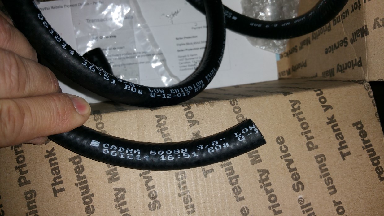 ![]() Really makes it stand out. The PCV line was one I had plus I bought another one to get the 'straight' end. If you don't have one, then get two of these: ![]() Now, nice and clean look (I used high heat RTV to 'hold' the curves together): Fuel Injection Hose (3/8"): ![]() Routing: ![]() ![]() ![]() Much nicer I think and looks like more expensive hoses too... -Don