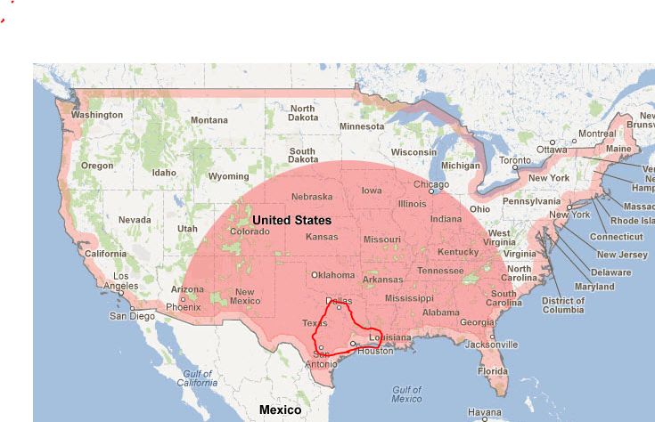 The Red triangle: Dallas, San Antonio and Houston.