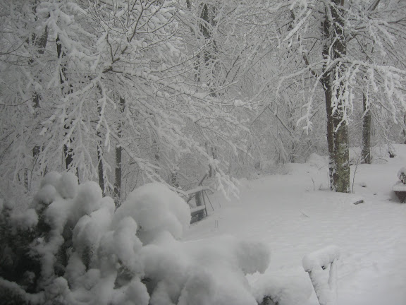 ...and to think, I was going to post these pics of my backyard after a very windy and wet snowstorm last year: