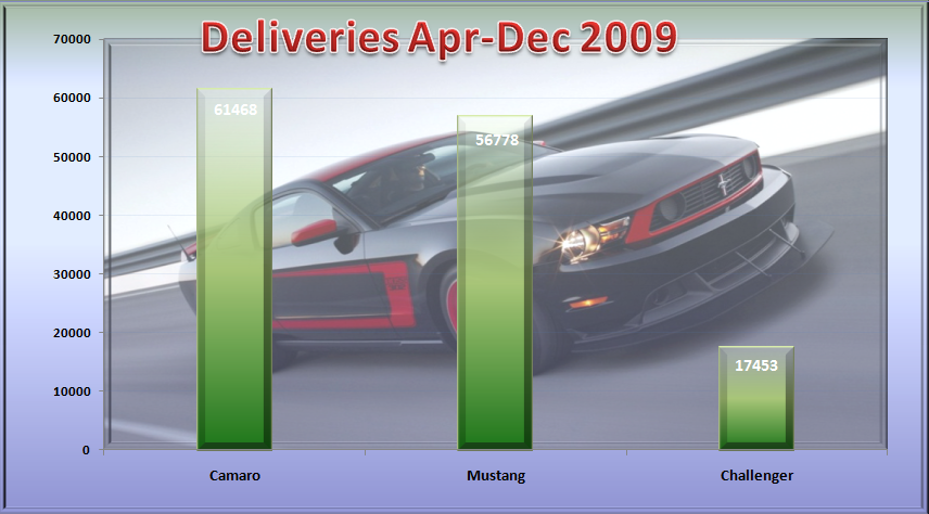 If GM offered the Camaro for a full 12 months in 2009 at the higher demand, that would have been an estimated extra 30,000 Camaros (@7500) or 91,000 sold for 2009... that means sales have dropped this year over a full 12 months around 11%. That means GM only had to sell 5000 units (which would be the worst sales month 4 times over) a month, the first 4 months in '09 to have a 0% increase in sales.