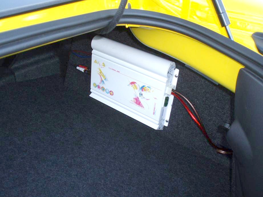 the roadster is 31.75" wide - the stealth enclosures are 35" apart in the rear and (off the top of my head) around 15.25" tall - so I am building a rack across the back that will display the amp. hard to explain but once you see pics it will make sense. I chose that amp because its a retro-recreation of the route66 (one of my favorite amps of all time) and the Camaro is a retro-recreation of the Camaro - seemed a natural fit... and since its a limited edition, i wanted to show it off a little. Steve let me buy some of the carpet that they wrap the enclosures in so I will have a perfect match to the enclosures. (again, freakin excellent customer service) which as you can see from the other pictures, is a decent match to the oem carpet. Though I suppose if I were really being picky, I would have bought enough to recover the floor and have a perfect match... but this system is for me, not for shows so the match is close enough.