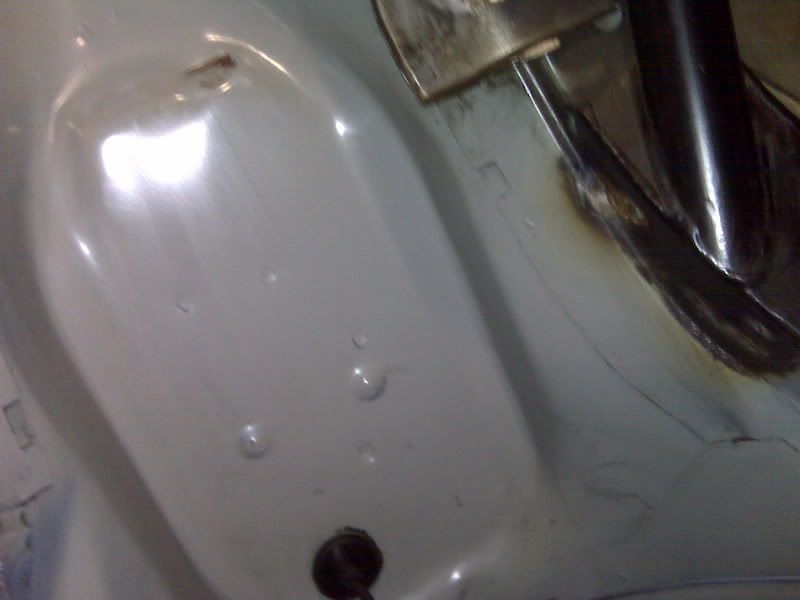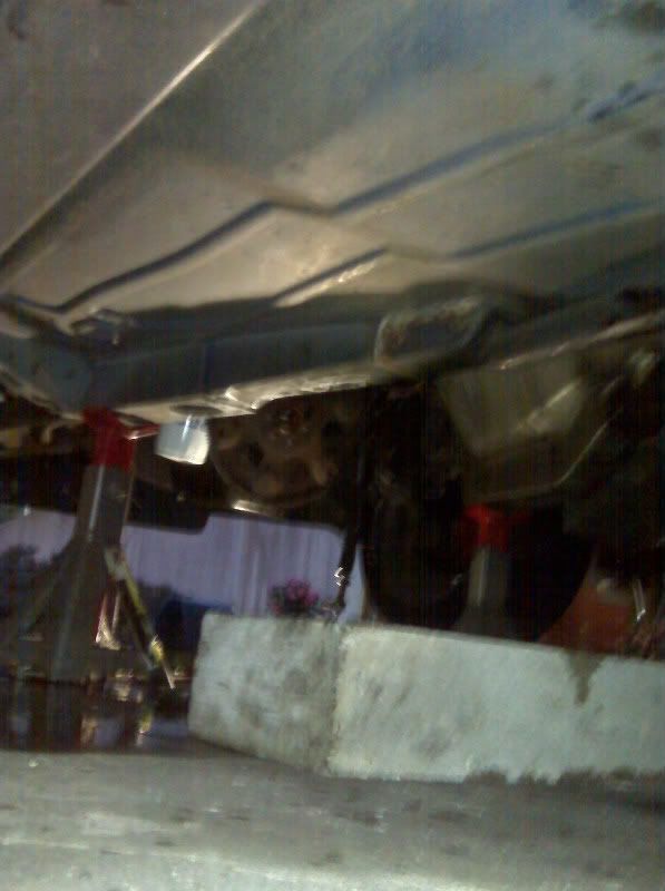 I did some more piddling around with it today. I intended to start undercoating the car with the can of POR-15 I bought, but because it rained real hard today there was still a lot of moisture in the air and I was afraid it might hinder the undercoating's bond with the underside of the car. I ended up just cleaning up the transmission tunnel with Simple Green and some rags to get it ready for the POR-15. I think what I'm going to do is just concentrate on the transmission tunnel and then undercoat the rest of the car once it's running and I can take it to my friend's shop and use his lift. It would be pretty uncomfortable trying to undercoat an entire car while it is sitting 2 ft above the floor on jack stands.