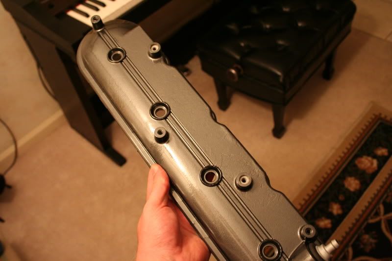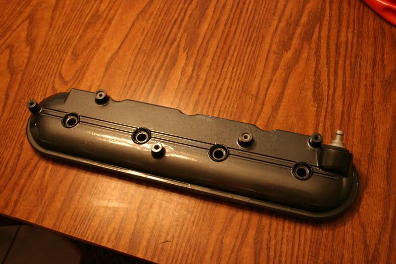 Cylinders 4.030 + or - .00025 Pistons 4.0265 + or - .00025 Clearance .0035 + or - .00025 Ring Gaps 1st .020 + or - .001 2nd .018 + or - .001 Oil .016 + or - .001 Crank end play .006 Rod side play (between rods) .012 + or - .001 Rod Torque 50ft/lb Mains: Inner 50ft/lb Outer 58ft/lb Side 18ft/lb Cam degreed in at 109 ![]() ![]() I took a pic of the freshly cleaned heads with PRC springs from Texas Speed. ![]() ------------------------------------------------------------- I suppose this is the point of no return. :salute: :evillol: Thanks to Mike (1mean96ss) for helping me out, the car is no longer drivable in its current state: ![]() ![]() -------------------------------------------------------- I got the valve covers back from getting powdercoated. I think they turned out pretty sharp. The color is a version of Black Chrome. Here's a few pictures in indoor lighting, and then what they look like on the block: ![]() ![]() ![]() ![]() I also picked up my Scorpions the other day!