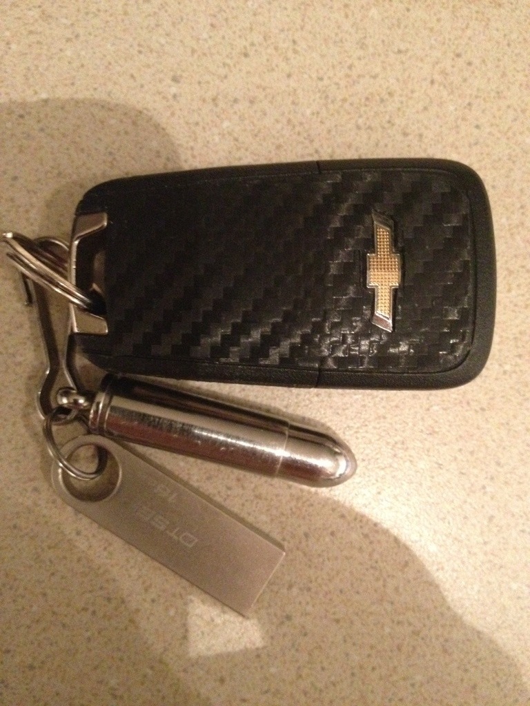 In addition to the Camaro key: I keep my gym membership keycard, house key for my place, dad/mom's place, a Hard Rock keychain/guitar that spins. Not a whole lot!