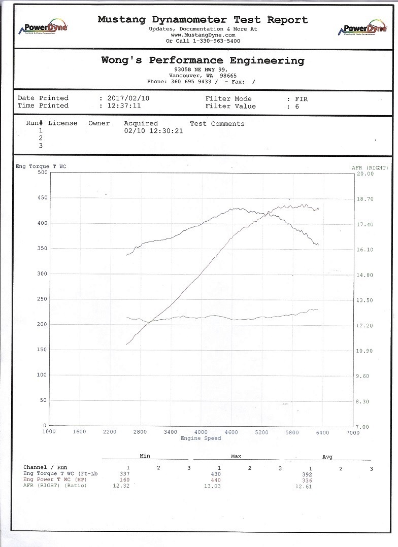 Might as well for the record put up my dyno sheet. Just to show the car has been tuned. It was a cold day and the car ran well. I am satisfied with the 400 HP and TQ at the wheel.